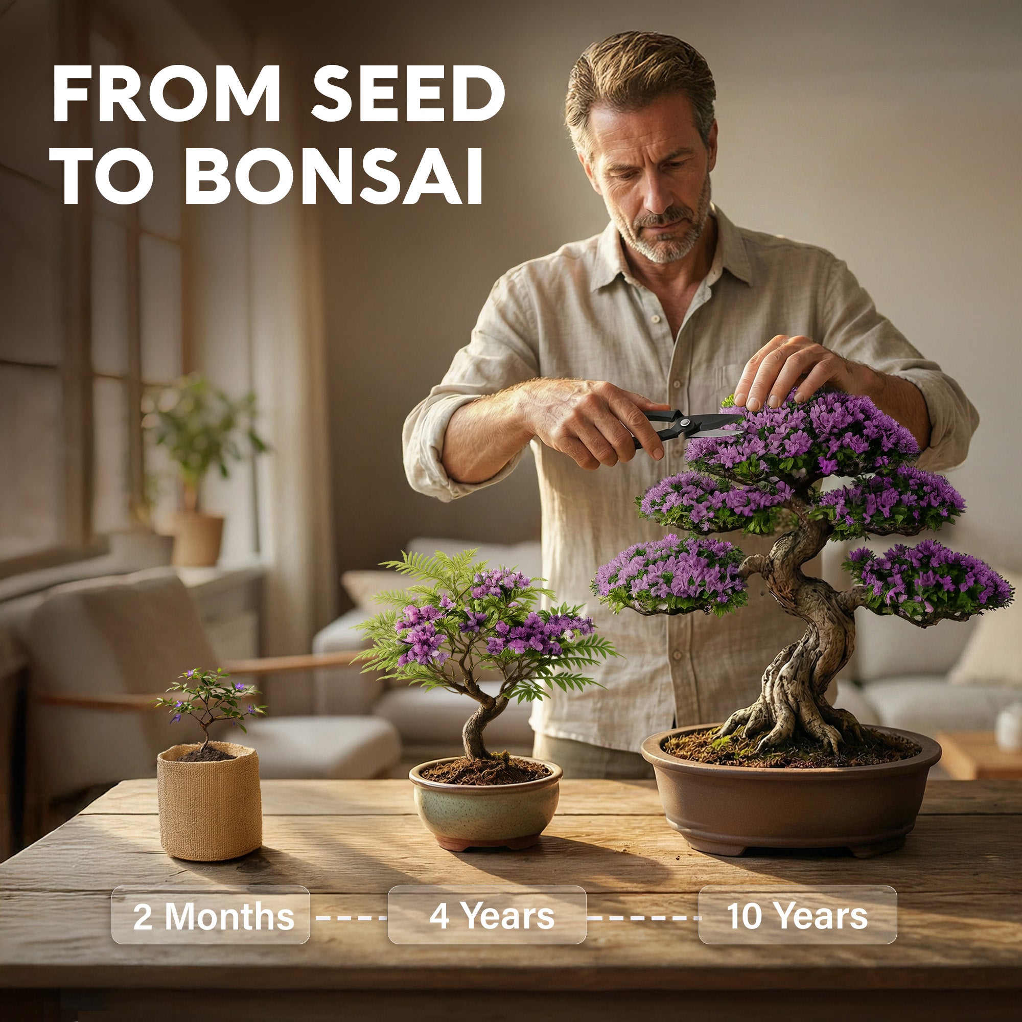 • BONSAI TREE STARTER KIT - With seeds of Avergo's most popular bonsai mini tree Crape Myrtle, Flame tree (Delonix Regia), Blue jacaranda (Jacaranda Mimosifolia), Pigeon Pea, and more